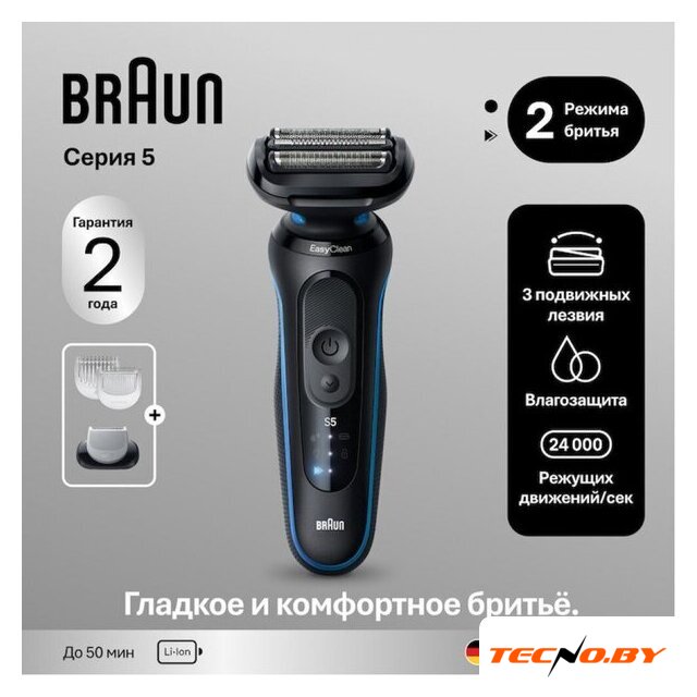 сеточная, влажное бритье, питание от аккумулятора, 50 минут автономной работы