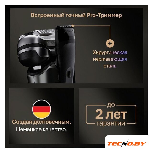 сеточная, влажное бритье, сенсор щетины, устройство для автомат. очистки, питание от аккумулятора, 50 минут автономной работы