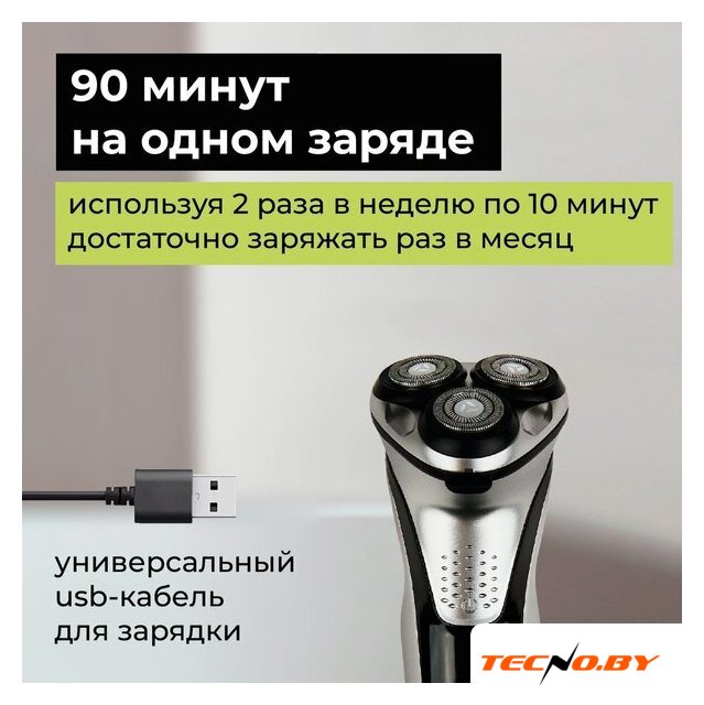 роторная, сухое бритье, питание от АКБ, 1 час 30 минут автономной работы