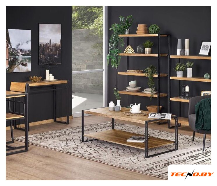 напольная, открытая, 10 полок, материал: древесная плита/металл, стиль: лофт, цвет: черный, 90x30 см