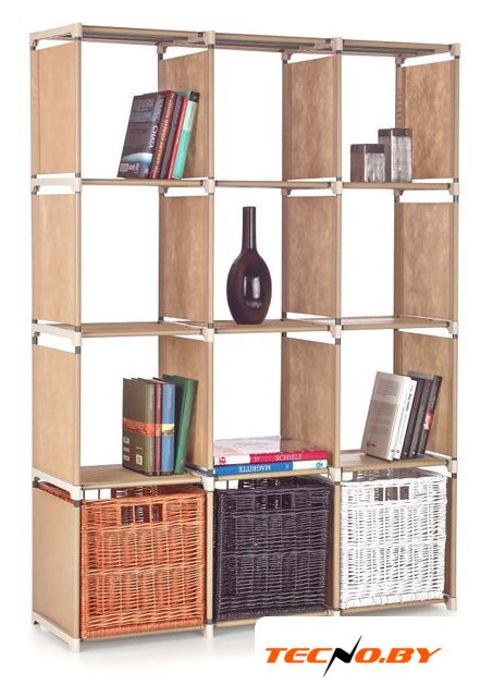 напольная установка, открытая, 5 полок, материал: текстиль/массив, стиль: скандинавский, цвет: бежевый/коричневый/серый, 28x26 см