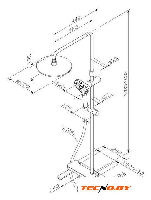 | Диаметр (ширина) верхнего душа | 220 мм |
