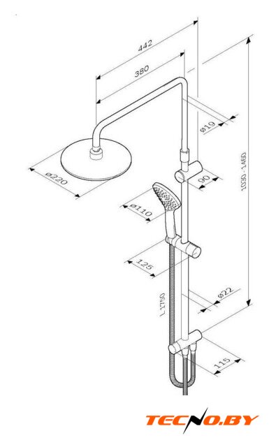 | Диаметр (ширина) верхнего душа | 220 мм |