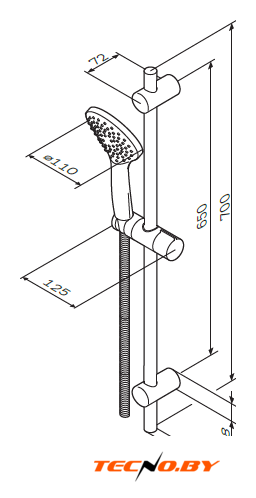 душевая система (с верхним душем), настенный монтаж, отсутствует смеситель, верхний душ 215 мм, ручной душ 100 мм