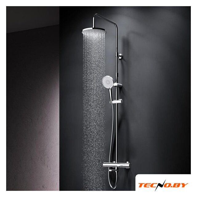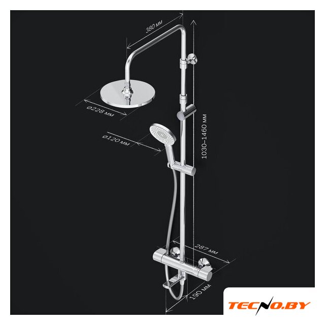 душевая система (с верхним душем), настенный монтаж, термостатический смеситель, верхний душ 225 мм, ручной душ 120 мм