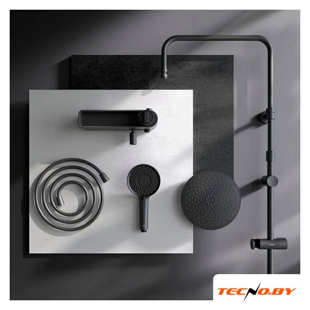 | Комплектация | верхний душ, штанга, ручной душ (лейка), держатель лейки, шланг, смеситель, излив для ванны, полочка |