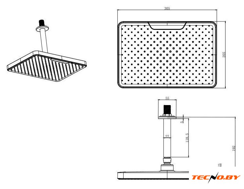 | Форма верхнего душа | прямоугольная |