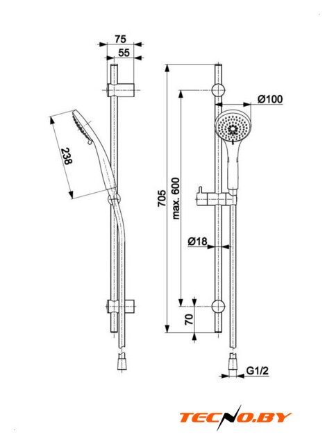 | Комплектация | штанга, ручной душ (лейка), держатель лейки |