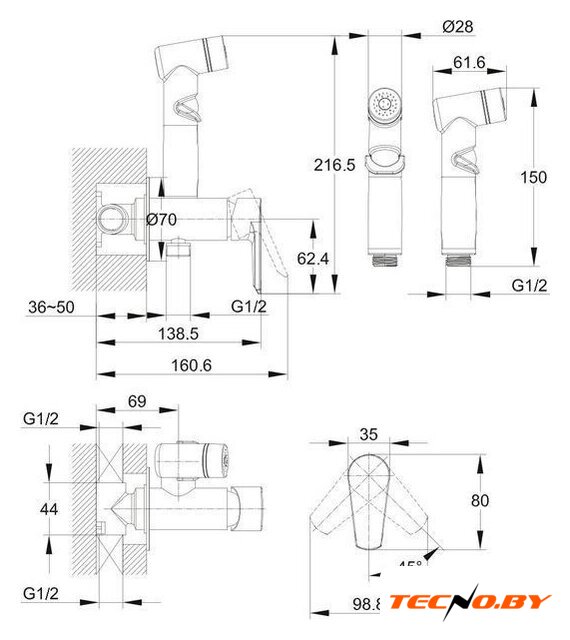 | Комплектация | держатель лейки, шланг, смеситель, гигиенический душ (лейка) |