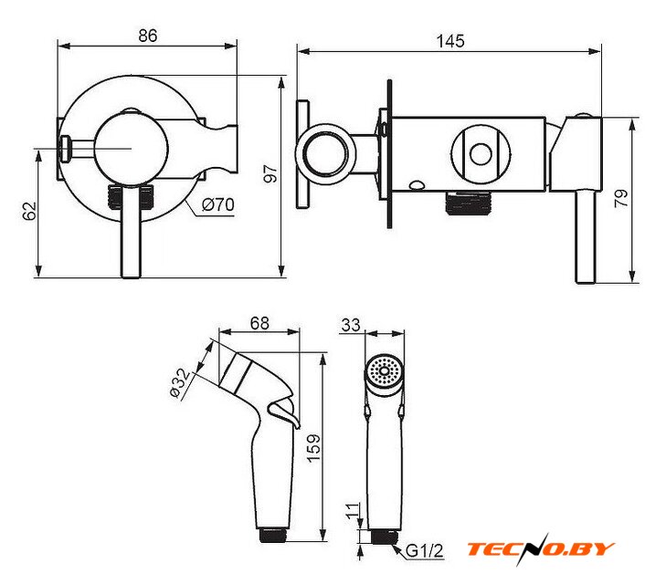 | Комплектация | держатель лейки, шланг, смеситель, гигиенический душ (лейка) |