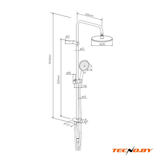 | Диаметр (ширина) верхнего душа | 230 мм |