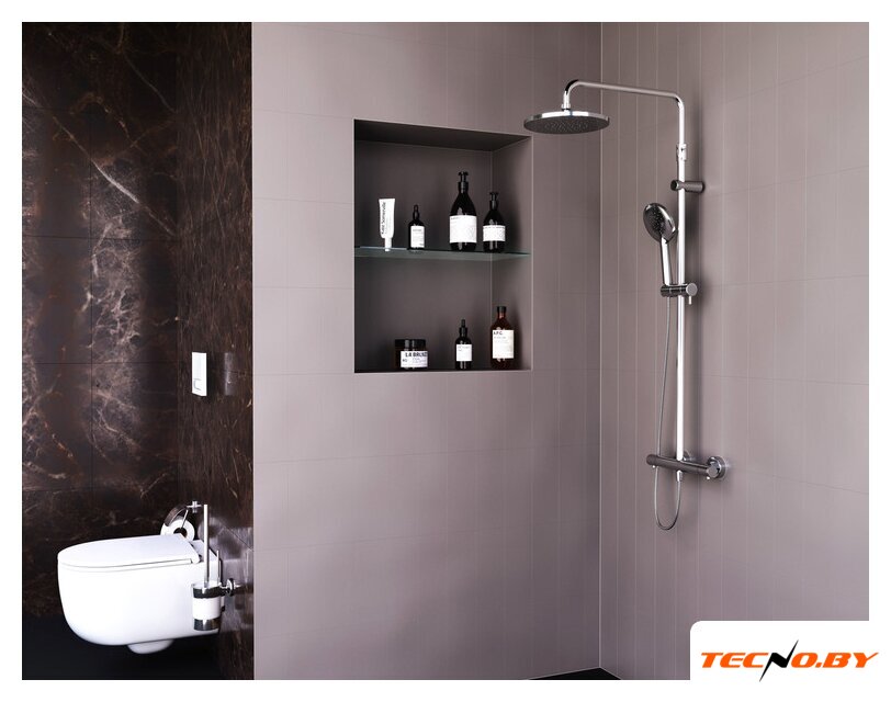 душевая система (с верхним душем), настенный монтаж, термостатический смеситель, верхний душ 300 мм, ручной душ 97 мм