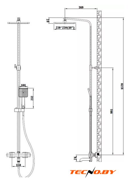 | Комплектация | верхний душ, штанга, ручной душ (лейка), держатель лейки, шланг, смеситель, излив для ванны |