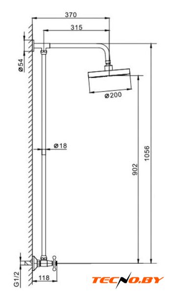 душевая система (с верхним душем), настенный монтаж, механический смеситель, верхний душ