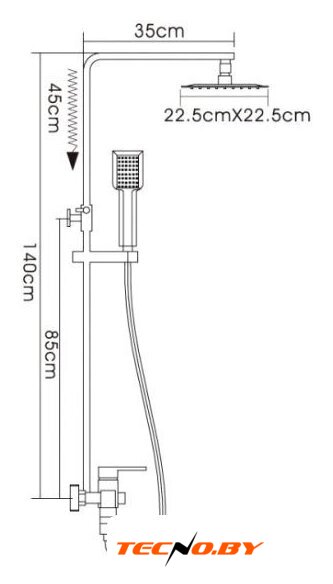 | Комплектация | верхний душ, штанга, ручной душ (лейка), держатель лейки, шланг, смеситель, излив для ванны |
