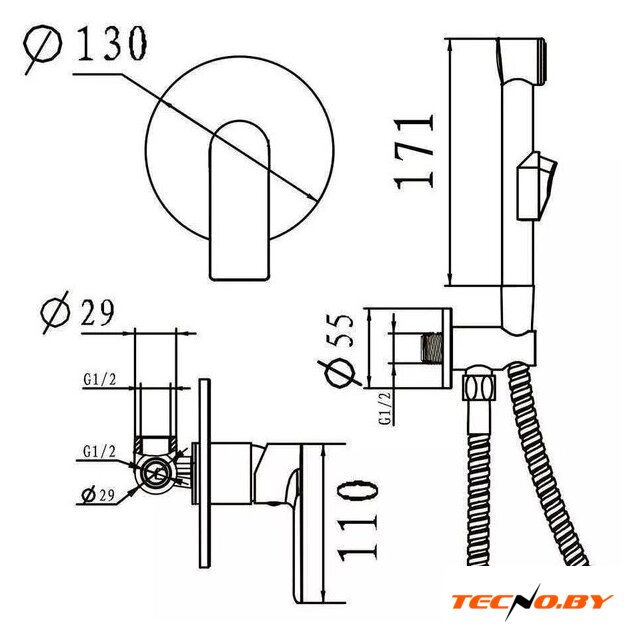| Комплектация | держатель лейки, шланг, смеситель, гигиенический душ (лейка) |