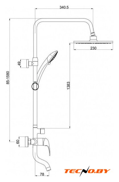 | Комплектация | верхний душ, штанга, ручной душ (лейка), держатель лейки, шланг, смеситель, излив для ванны |
