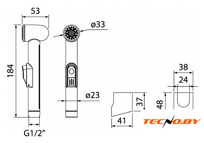 гигиенический душ, настенный монтаж, отсутствует смеситель, ручной душ