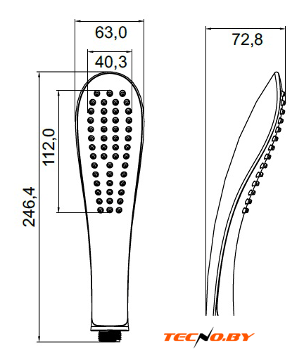 | Диаметр (ширина) ручного душа | 112 мм (40 мм) |