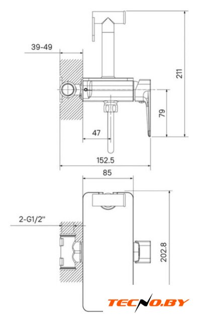 гигиенический душ, скрытый монтаж, механический смеситель