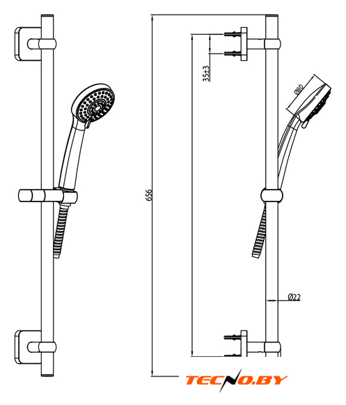душевой гарнитур, настенный монтаж, отсутствует смеситель