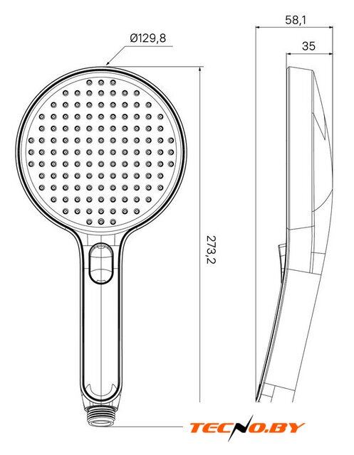 душевая лейка, отсутствует смеситель, ручной душ 115 мм
