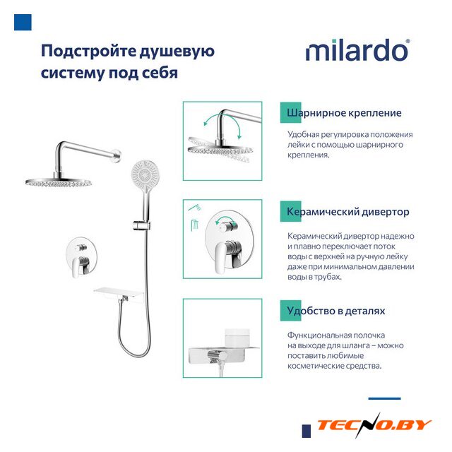| Комплектация | верхний душ, ручной душ (лейка), держатель лейки, шланг, смеситель |