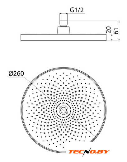 верхний душ, отсутствует смеситель, верхний душ 260 мм
