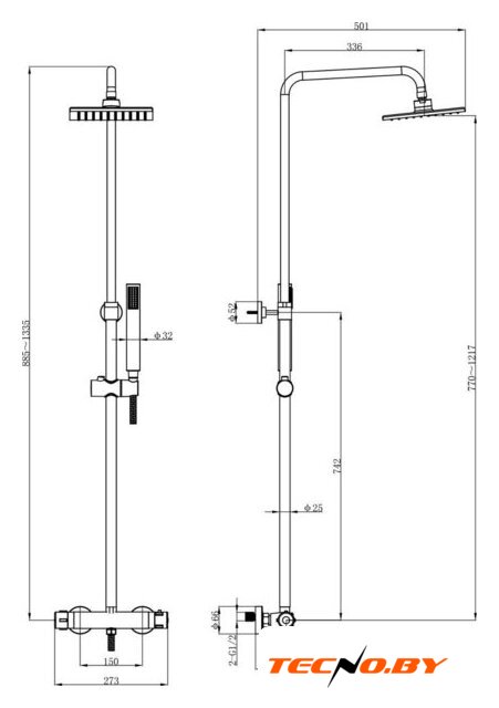 | Вылет верхнего душа | 336 мм |