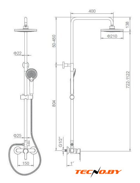 | Комплектация | верхний душ, штанга, ручной душ (лейка), держатель лейки, шланг, смеситель |