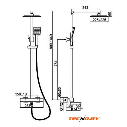 | Комплектация | верхний душ, штанга, ручной душ (лейка), держатель лейки, шланг, смеситель, излив для ванны |
