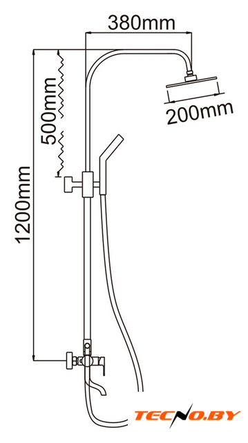 душевая система, настенный монтаж, механический смеситель