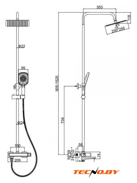 | Диаметр (ширина) верхнего душа | 250 мм |