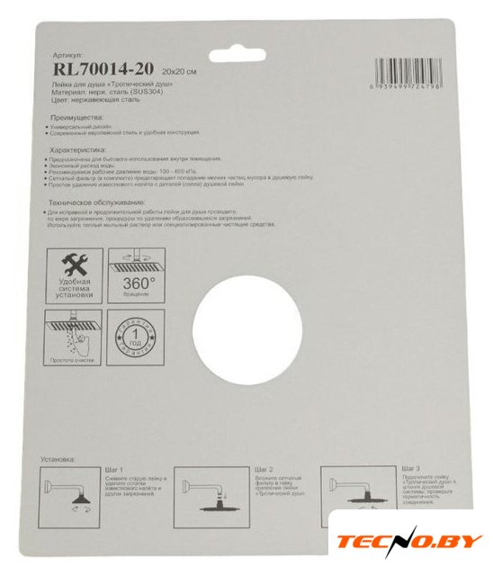 | Диаметр (ширина) верхнего душа | 200 мм |