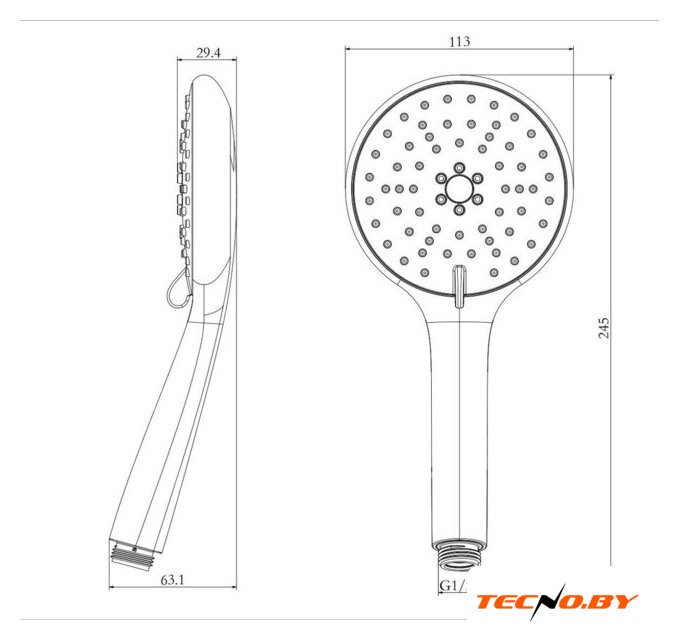 душевая лейка, отсутствует смеситель, ручной душ 98 мм
