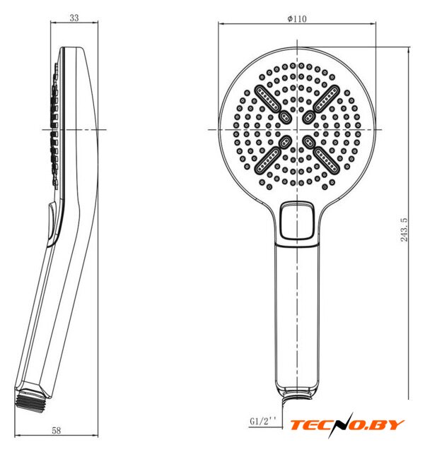 | Диаметр (ширина) ручного душа | 110 мм |