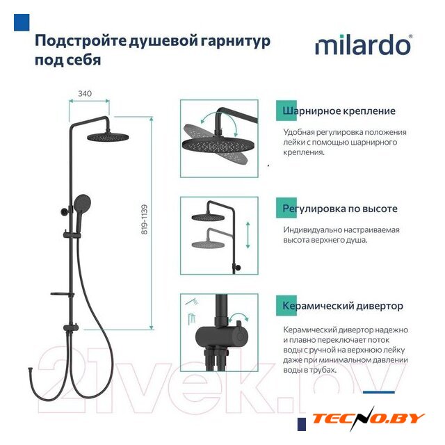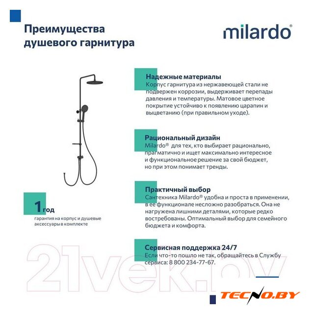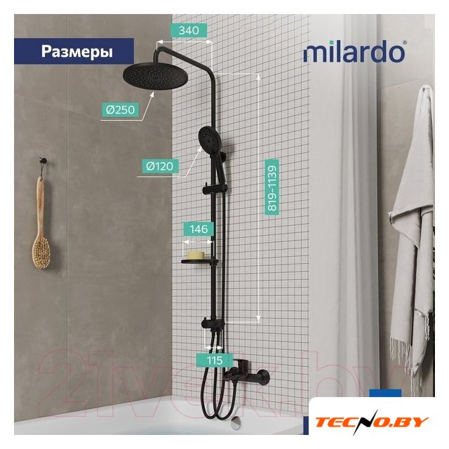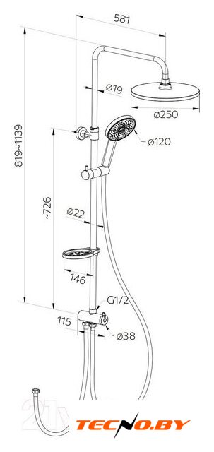 | Комплектация | верхний душ, штанга, ручной душ (лейка), держатель лейки, шланг, мыльница или держатель для мыла |