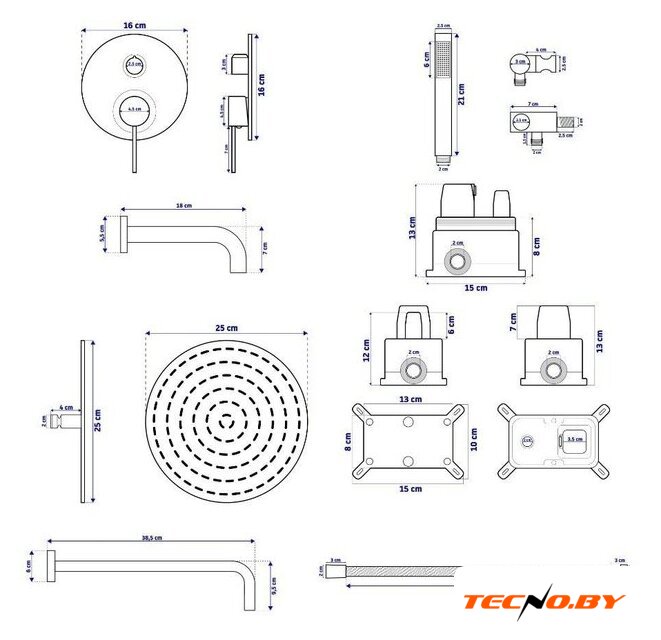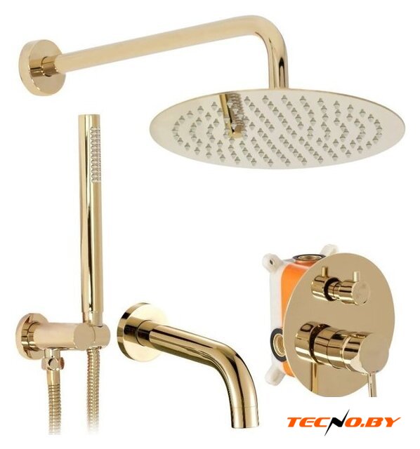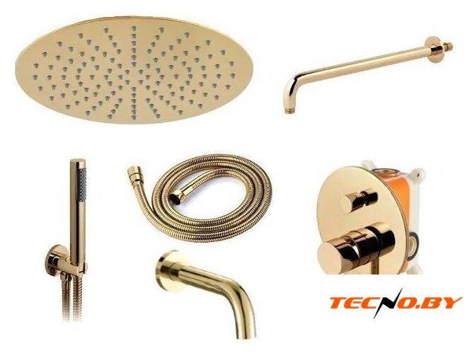 | Комплектация | верхний душ, ручной душ (лейка), держатель лейки, шланг, смеситель, излив для ванны |