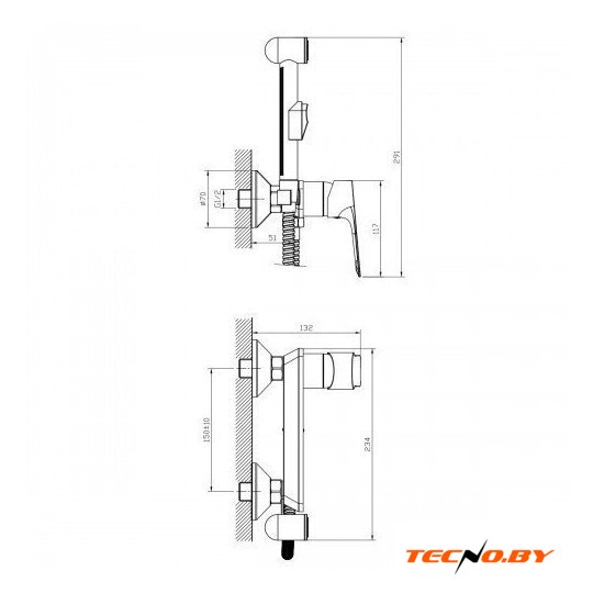 гигиенический душ, скрытый монтаж, механический смеситель