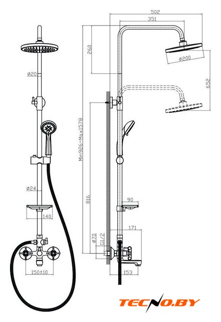 | Вылет верхнего душа | 351 мм |