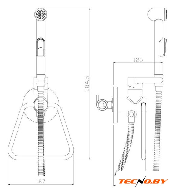 гигиенический душ, скрытый монтаж, механический смеситель