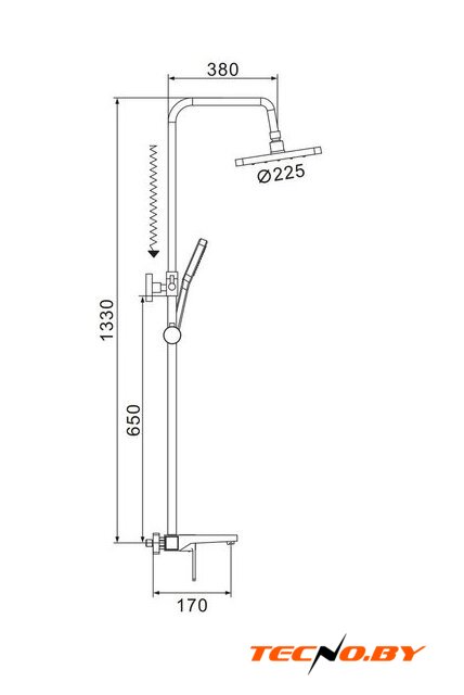 | Диаметр (ширина) верхнего душа | 225 мм |