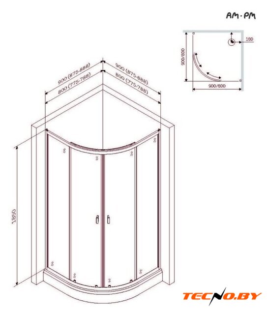 закруглённый, 80x80 см, акрил, высокий, 15 см, противоскользящее покрытие дна, цвет: белый