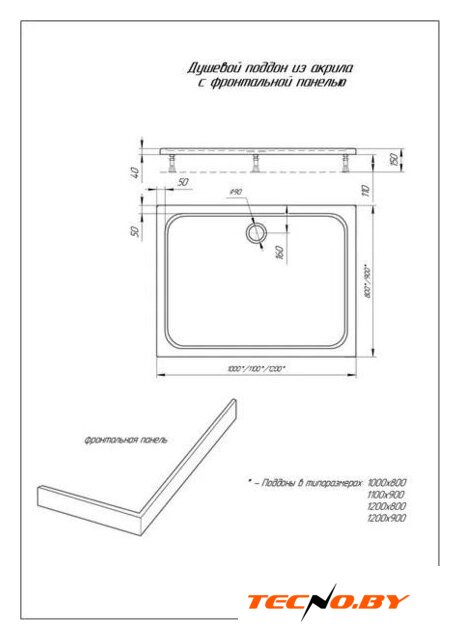 прямоугольный, 100x80 см, акрил, низкий, 5 см, цвет: белый