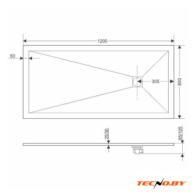 прямоугольный, 120x90 см, акрил, низкий, 5 см, цвет: белый