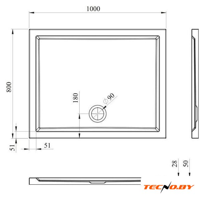 прямоугольный, 100x80 см, акрил, высокий, 24 см, противоскользящее покрытие дна, цвет: белый