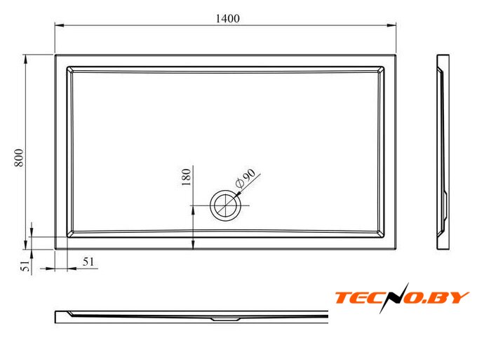 прямоугольный, 100x90 см, акрил, низкий, 5 см, цвет: белый