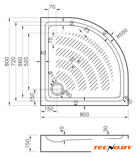 закруглённый, 80x80 см, акрил, низкий, 15 см, цвет: белый