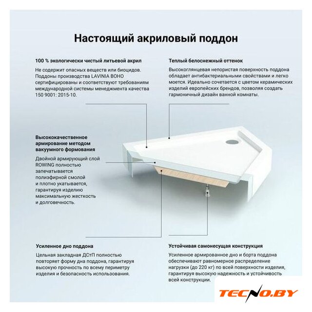 квадратный, 100x100 см, акрил, низкий, 5 см, цвет: белый