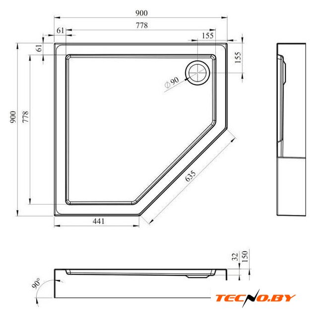 закруглённый, 100x100 см, акрил, низкий, 16 см, цвет: белый